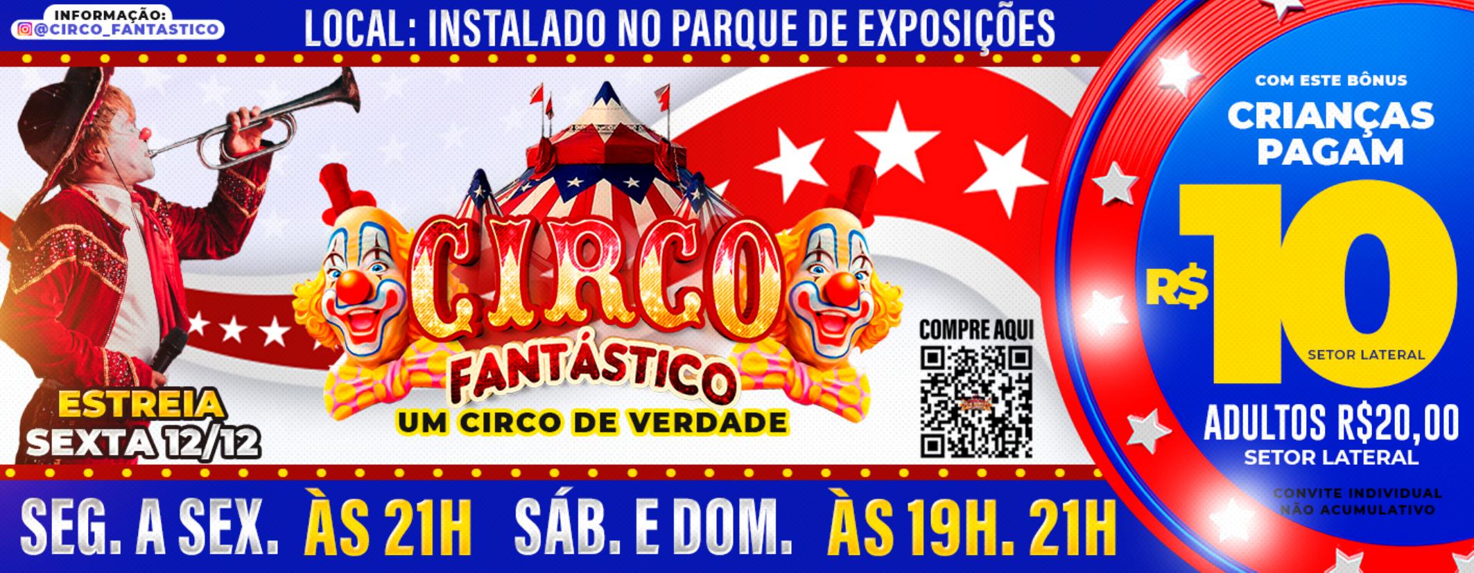 Promoção Imperdível! Traga toda a família para o Circo Fantastico, criança até 12 anos paga apenas R$10,00 e adultos R$20,00 em no Setor Lateral apresentando o bônus! Uma oferta especial para tornar o espetáculo ainda mais acessível e divertido para todos. Aproveite! Promoção válida de Sexta à Domingo.